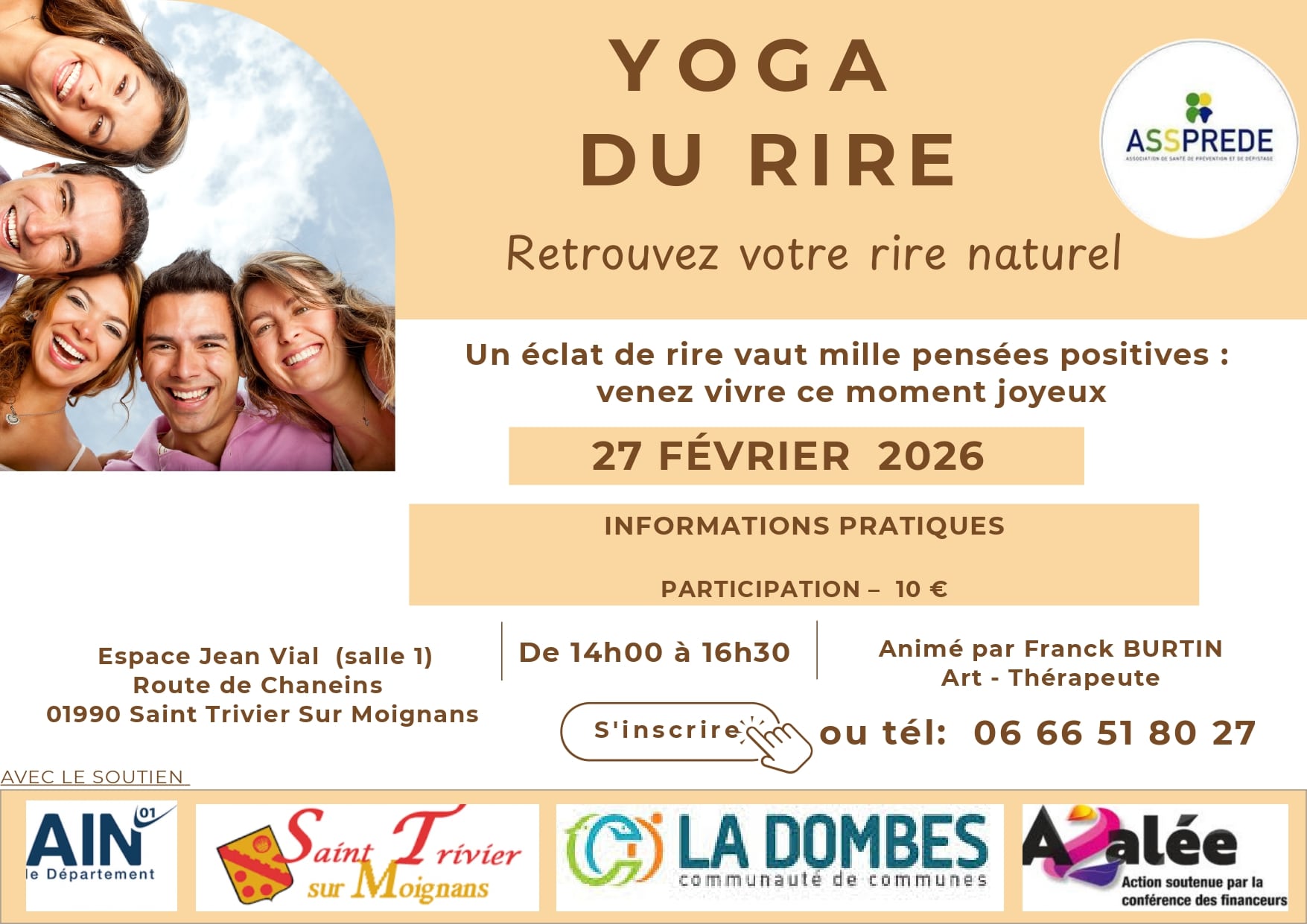 Retrouvez votre rire naturel. Un éclat de rire vaut mille pensées positives : venez vivre ce moment joyeux. |